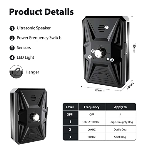 - 🐕【Dispositif anti-aboiement doux pour animaux de compagnie】 Le dispositif anti-aboiement utilise la dernière technologie à ultrasons qui convient aux chiens de toutes races et de toutes tailles. Arrêtez les aboiements excessifs et bruyants des chiens en émettant un son ultrasonique sans danger pour les humains et les chiens afin de faire taire efficacement le chien.