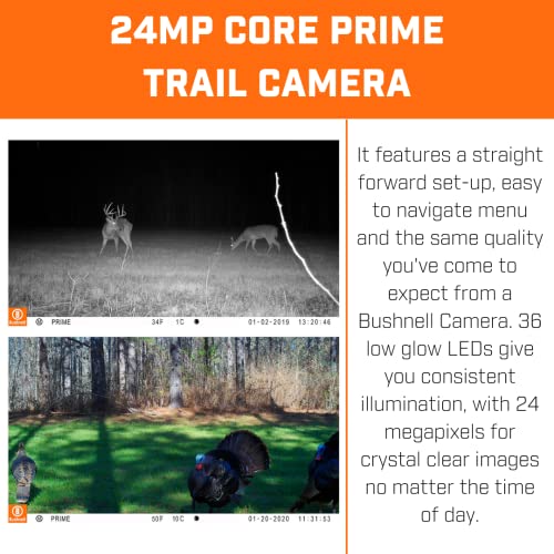 / Bushnell – Core Prime 24 MP – Caméra Trail – Marron Sable – Faible Lueur – Faune – Extérieur –1080p- Animaux – sans Fil – Nature – Vision Nocturne – Mode Scan de Champ – 119932M