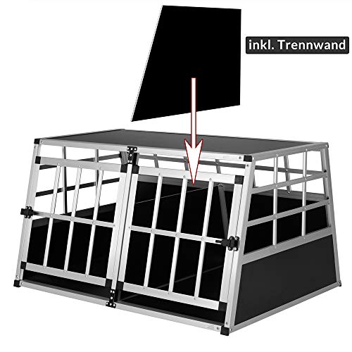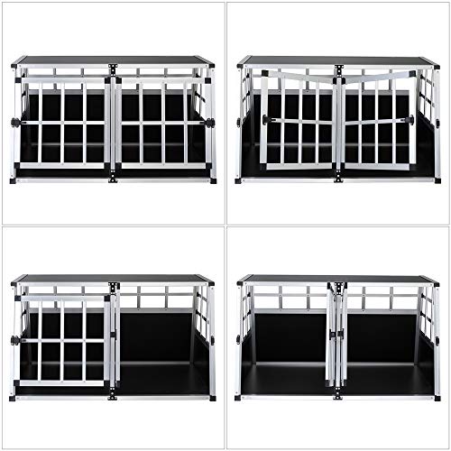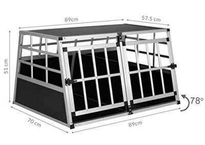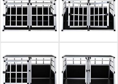 - AÉRATION : La grille de la cage de transport assure de l’air frais pour vos biens aimés. Cette cage est équipée d’une cloison amovible et de 2 portes verrouillables. Ainsi, la cage convient à 2 chiens plus petits ou à un chien très grand.