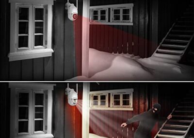 - 💡[Caméra de surveillance dôme avec lumière] Quatre des huit lumières de la caméra de surveillance sont des lumières blanches qui peuvent être réglées de manière à s’allumer lorsque la caméra détecte un mouvement. Cela sert à la fois d’éclairage et d’avertissement.