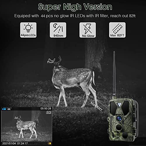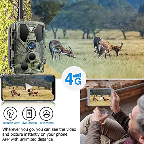 Caméra de Chasse 4G 36MP 4K Vidéo, lithium 5000mAh,Camera de Chasse Vision Nocturne avec App Gratuite Carte SIM, Vidéo en Temps Réel, 940nm Infrarouge LEDs, Vitesse de Déclenchement 0,2s,IP66 Étanche