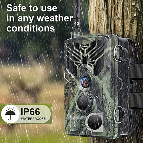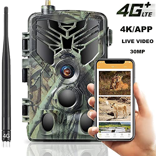 Caméra De Chasse 4G 4K 30fps Vidéo en Temps Réel, Clear 65FT NO Glow INFRARIGE Vision NOIME, 0,5S Motion Activé De 120° Détection, Max 256 Go SD Carte, App Contrôler