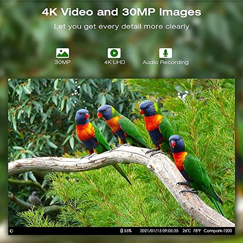 - 3 0mp / 4k Complet HD Résolution: Caméras HD Capturez le suivi avec une vision nocturne pleine HD 4K Avec clair et son et images, appareil photo idéal pour la surveillance de la faune extérieure.