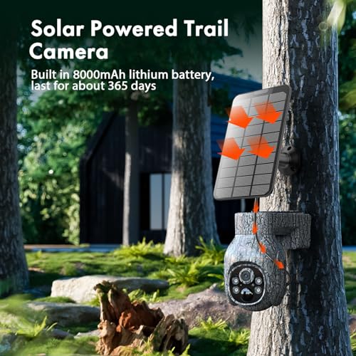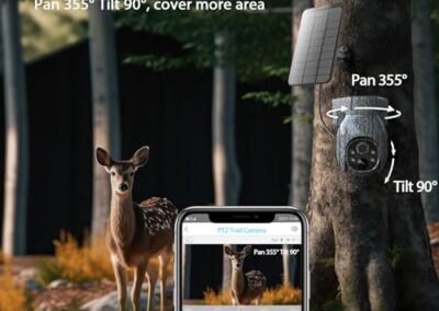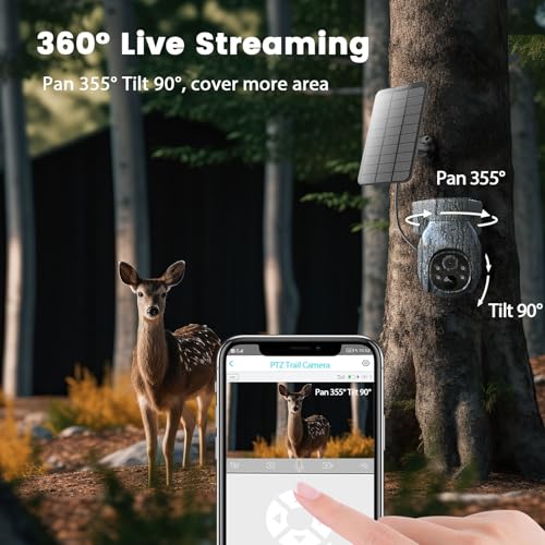• 【Vidéo 2K Claire Panoramique 355° Inclinaison 90° Vue】La caméra chasse sans fil capture des vidéos réelles en HD 2K (2668×1440). Elle peut effectuer un panoramique de 355° et s’incliner de 90° pour obtenir l’angle le plus large possible afin de surveiller la faune et la flore. Vous pouvez facilement ajuster l’angle sur l’application à distance.