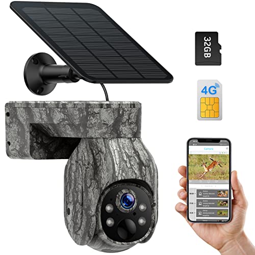 Caméra de Chasse 4G sans Fil avec Carte SIM, 2K HD 3MP Camera de Chasse Solaire avec Carte SD 32 Go Caméra de Surveillance Animaux Infrarouge Nocturne Exterieur Détecteur de Movement 0.2s IP66 Étanche
