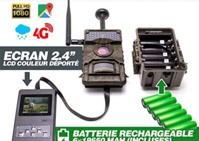 Caméra de Chasse HD 1080P IR Invisible GPS GSM 4G Alerte Push Envoi Photo et vidéo sur Application iOS et Android Serveur Cloud e-Mail et FTP avec Batterie Solaire et Box antivandale