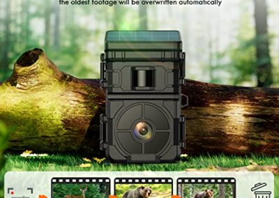 - 【Photos 24MP & Vidéo HD 1080P】La camera de chasse solaire pour animaux sauvages capture des vidéos 1080p natives et des images claires 24MP dès qu’un mouvement est détecté. La vision nocturne avancée vous montre des détails de haute qualité de jour comme de nuit.