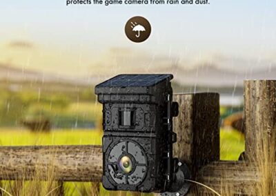 - 【Étanche IP66 & Multiusage】Le boîtier robuste et étanche de la caméra chasse protège la caméra de la pluie et de la poussière. L’étanchéité IP66 garantit le bon fonctionnement de la caméra dans les environnements difficiles tels que les déserts, les prairies et les forêts tropicales humides. Vous pouvez appliquer la camera chasse pour l’observation de la faune et la chasse, la sécurité de la maison/des biens, la surveillance des zones agricoles, les cultures à distance, etc.