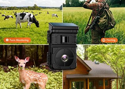 - 【Grand Angle 120° & Vitesse de Déclenchement 0,1s】La camera chasse solaire a l’étonnante vitesse de déclenchement la plus rapide. Une fois que le mouvement d’un animal est détecté, la camera de chasse nocturne se déclenchera immédiatement dans les 0,1s. La distance de déclenchement et de détection de mouvement peut atteindre 20m, offrant un angle visible de détection de 120°. Idéal pour la surveillance des fermes, la chasse au cerf en plein air et la sécurité domestique.