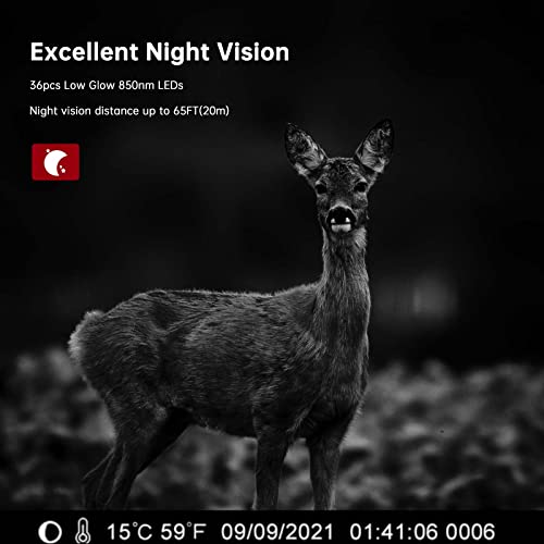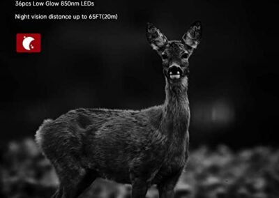 - 【Performance Nocturne Parfaite】Filtre infrarouge entièrement automatique, 36 LED infrarouges de 850nm intégrées. La caméra de jeu nocturne peut capturer des images nocturnes en noir et blanc pour une large gamme. Les LED IR à faible luminosité permettent de capturer les animaux dans la nuit sans les déranger, offrant une vision nocturne claire et équilibrée.