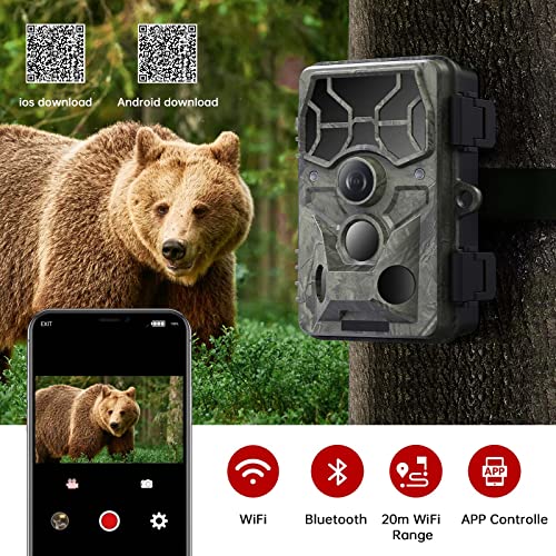- 【Connexion Wi-Fi et Contrôle APP】La caméra de chasse est équipée du Wi-Fi et est livrée avec une application gratuite et facile à utiliser (Game Camera Pro). Vous pouvez vous connecter au réseau Wi-Fi de la caméra de chasse par l’application, puis vous pouvez visualiser ou télécharger des photos et des vidéos directement sur votre téléphone. Il vous suffit de rester à portée du signal WiFi.