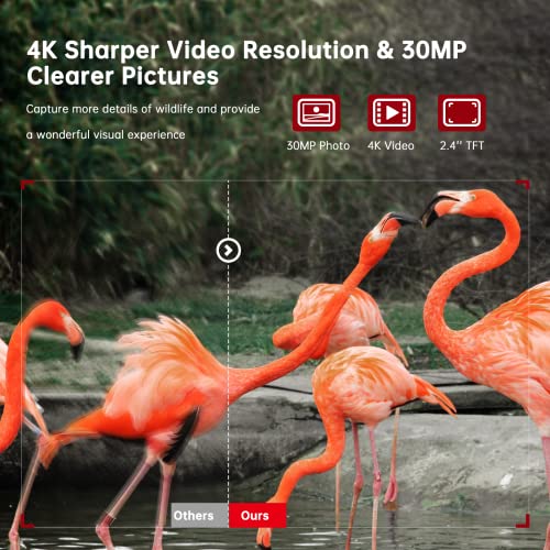- 【Vidéo 4K Ultra HD & Image 30MP】La caméra chasse wifi prend en charge la résolution HD 4K/30MP pour des images d’une netteté stupéfiante et des vidéos audibles avec un écran LCD de 2,4 », qui peut être enregistré clairement de jour comme de nuit, vous offrant des détails visuels de haute qualité et passionnants. La caméra de chasse vous rapproche pour observer la faune.