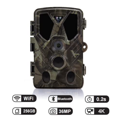 Caméra Piste, 4K 36MP Caméra Surveillance Faune WiFi Temps Déclenchement 0,2S Caméra Jeu Caméra Chasse Activée Mouvement Vision Nocturne Caméras Infrarouges Chass Nocturne Idée Cadeau
