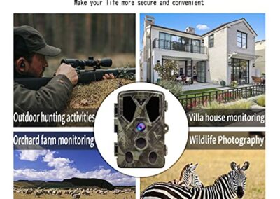 - Applications : cette caméra de chasse dispose d’une variété de modes, y compris photo, vidéo, photo et vidéo, time lapse. Elle est extrêmement adaptée pour la prise de vue sur le terrain. Les caméras HD peuvent également être utilisées comme surveillance de sécurité à domicile, entrepôts de surveillance, gardes de ferme.