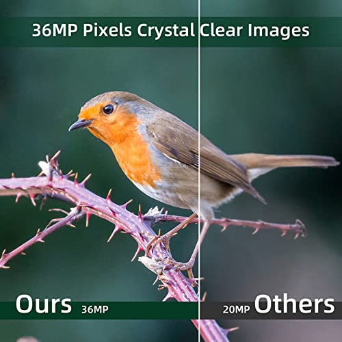 - Haute définition : des objectifs et des capteurs d’image de haute qualité garantissent des images de haute qualité la nuit. La faune peut être enregistrée dans des photos de haute qualité 36MP et des vidéos 4K fluides avec du son.