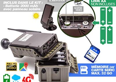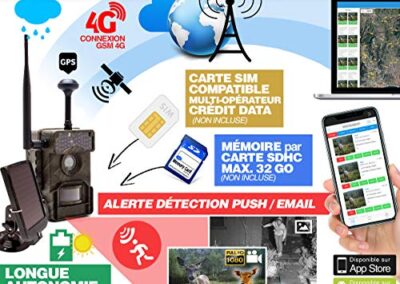 - Caméra solaire de chasse HD 4G LTE GSM waterproof IP66 longue autonomie « »3 ANS » », envoi en temps réel et envoi de photo et vidéo HD sur Server cloud « »apps ios & android » » ou PC; sur serveur FTP, par email