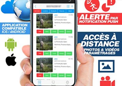 - Type d’enregistrement : Photo (+ rafales), Photo + vidéo, Vidéo, Photo timelapse; Mode d’enregistrement : à la détection de mouvement, Programmée