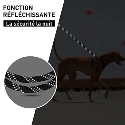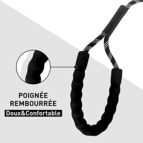 • LA RÉSISTANCE: Notre la laisse pour chien être suffisamment solide pour supporter la force de votre chien s’il tire, saute ou court après quelque chose. Parce que cette longue laisse pour chien est faite de nylon extrêmement résistant à l’usure. Le joint de la corde est cousu par la machine et fort et Robuste