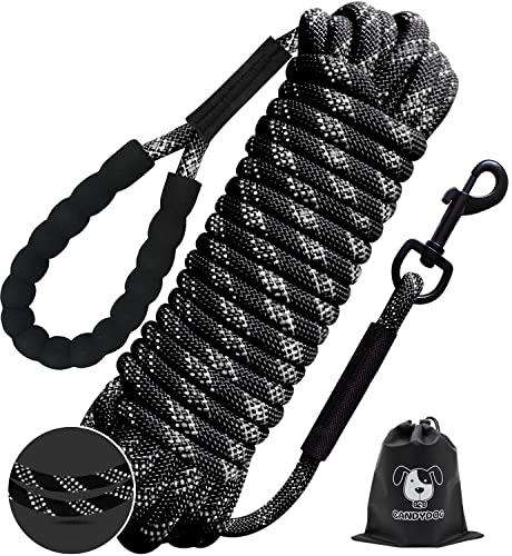 CANDYDOG Longe pour Chien 10m, Corde avec Poignée Rembourrée, Convient aux Chiens de Petite à Grande Taille, Noire – Laisses Classiques Laisses et de Dressage