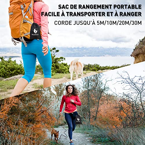 • LA PRATICITÉ: Cette longue laisse de chien parfaite pour les activités en plein air. La longueur 10M longue et le matériau de nylon de haute résistance permettent à votre chien de courir et de jouer librement. De plus, un sac d’emballage pratique pour stocker des collations ou ramasser les déchets, son design léger et sa méthode de rangement pratique vous permettent de l’emporter partout avec vous. C’est le compagnon idéal pour profiter des activités de plein air avec votre animal de compagnie