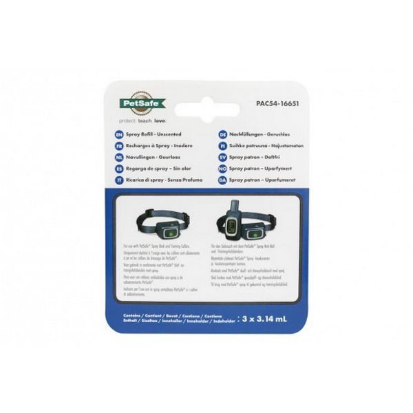 Les cartouches de recharge inodore compatibles avec le collier anti aboiement à spray PBC19-16370 et le collier de dressage à spray PetSafe PDT19-16397. Faciles à installer et sans danger. Lot de 3 recharges.