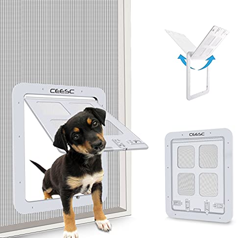 CEESC Chatiere pour Chat (Taille Extérieure: 29 x 24 cm), Chatiere pour Chien Verrouillable à 4 Voies pour Animal avec Circonférence <60 cm, Facile à Installer (Blanc)