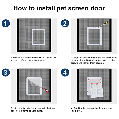 - ☞FACILE À INSTALLER — Les instructions complètes incluses, vous permettent d’installer facilement dans la porte moustiquaire, les panneaux et le patio ou toute autre zone d’écran, etc.