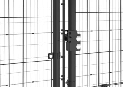 - La porte à charnières avec un système de loquet verrouillable assure une sécurité supplémentaire à vos chiens.