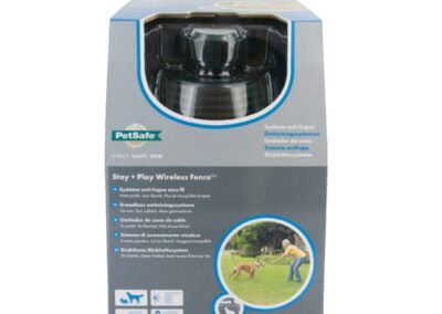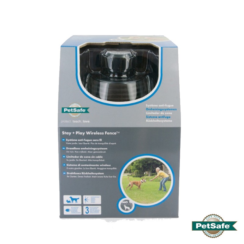 Le dispositif Stay+Play Wireless Fence™ PetSafe® émet une stimulation électrostatique sans danger par l’intermédiaire de deux contacteurs, en contact avec le cou de votre animal. Si ce dernier franchit la limite de la zone établie, une stimulation électrostatique attirera son attention, et cela sans lui faire de mal.