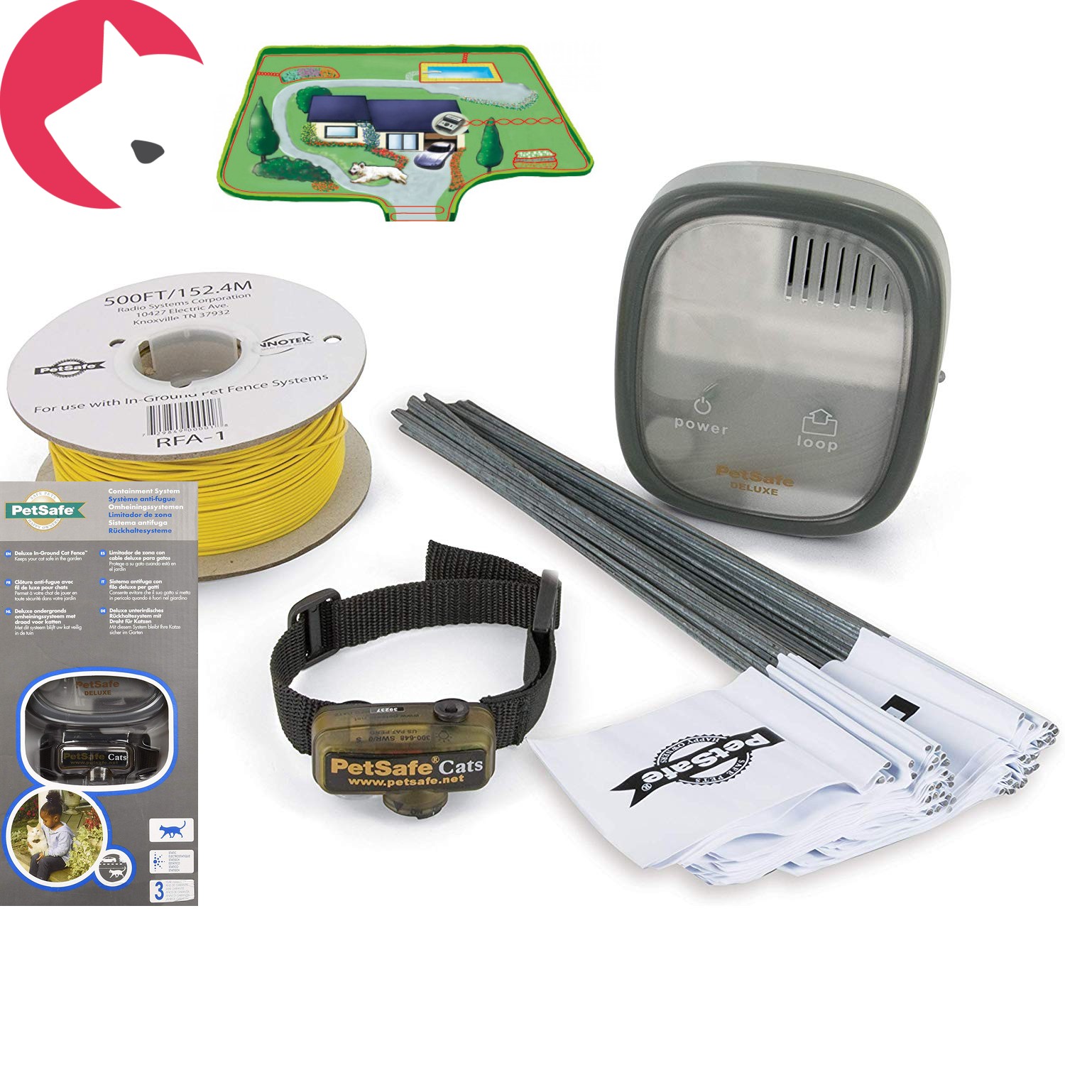 Clôture anti-fugue de luxe avec fil pour chats In-Ground Cat Fence™ est le plus petit collier-récepteur avec section élastique spécialement conçue pour les chats. Protection contre la foudre intégrée. Ce collier fonctionne avec une pile RFA-188 PetSafe® (incluse) . Pour les chats d’au moins 2,7 kg Pour un tour de cou allant jusqu’à 29 cm