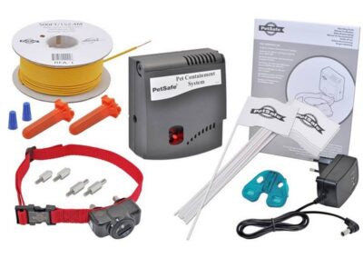 Un câble de 150 mètres, 1 récepteur, 1 émetteur Collier , 50 fanions et 1 manuel d’utilisation. Après une courte période de 1 à 2 semaines, votre animal de compagnie aura appris à ne pas franchir les limites. Cette clôture convient aux chiens de 3,6 kg et plus. Pour usage à l’extérieur uniquement Pour les chiens d’au moins 3,6 kg Pour un tour de cou allant de 15 à 66 cm 4 niveaux réglables de stimulation statique Le mode signal sonore seul avertit votre animal domestique par un bip