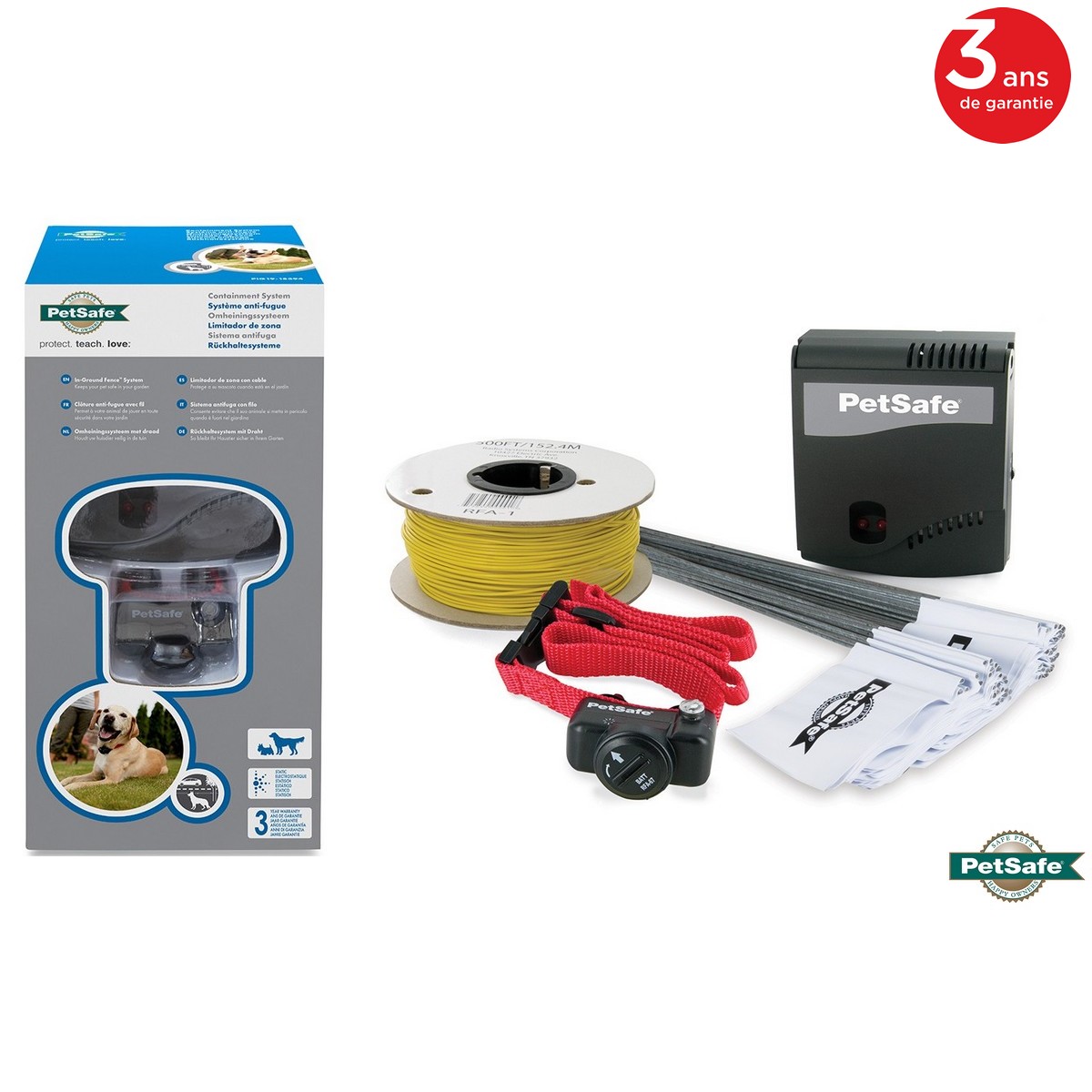 la clôture anti fugue chien PetSafe Radio Fence PRF-3004W-20 est l’un des modèles qui a le plus d’avis positifs des propriétaires de chiens. ce système anti fugue est simple d’installation et d’utilisation, c’est une solution efficace pour votre chien. il faut au minimum une surface de vingt mètres carrés pour une efficacité optimale.