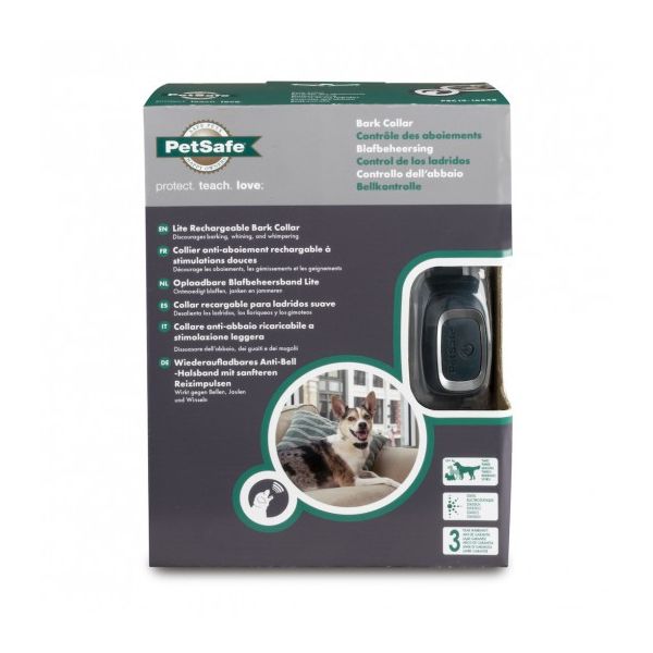 Le collier anti-aboiements rechargeable pbc19-16448 PetSafe réduit les aboiements, les gémissements et les geignements. Il est étanche est conçus pour les chiens nécessitant une stimulation électrostatique plus douce que celle de nos colliers anti-aboiement standard. Ce collier utilise également une technologie unique de détection des aboiements qui s?active seulement lorsque le chien aboie. Ce collier se règle automatiquement en toute sécurité 15 sur niveaux gênants de stimulation électrostatique permettant de trouver le réglage parfait pour votre chien.