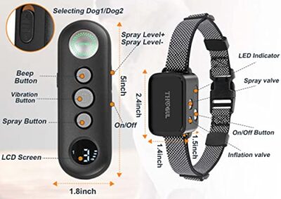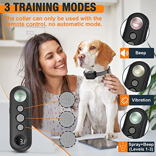 - 💓 [3 modes d’entraînement et 3 niveaux de pulvérisation] – trois modes d’entraînement – pulvérisation / bip / vibration, peut entraîner le chien à faire des comportements différents, distinguer clairement les commandes et ne pas créer de confusion. Le nombre de pulvérisations peut être ajusté par le bouton haut / bas: pulvériser une, 2 ou 3 fois. Veuillez noter: le bip et les vibrations ne sont pas réglables.