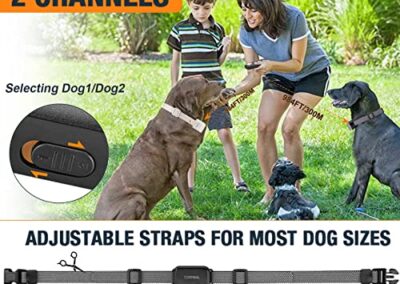 - 💓 [2 canaux & éviter le « faux Spray »] – le bouton – poussoir permet de contrôler 2 colliers et de former deux chiots différents. [pas de colliers vendus séparément, veuillez choisir un ensemble de 2 COLLIERS] ce collier d’écorce de Spray n’a pas de mode automatique, [à utiliser uniquement avec la télécommande] Ce n’est jamais le cas avec un « faux Spray ».