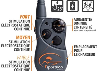Collier de Dressage SportTrainer pour Chien, Télécommande Submersible, 21 Niveaux de Stimulation (Électrostatique, Vibration, Signal Sonore) – Portée 450 m