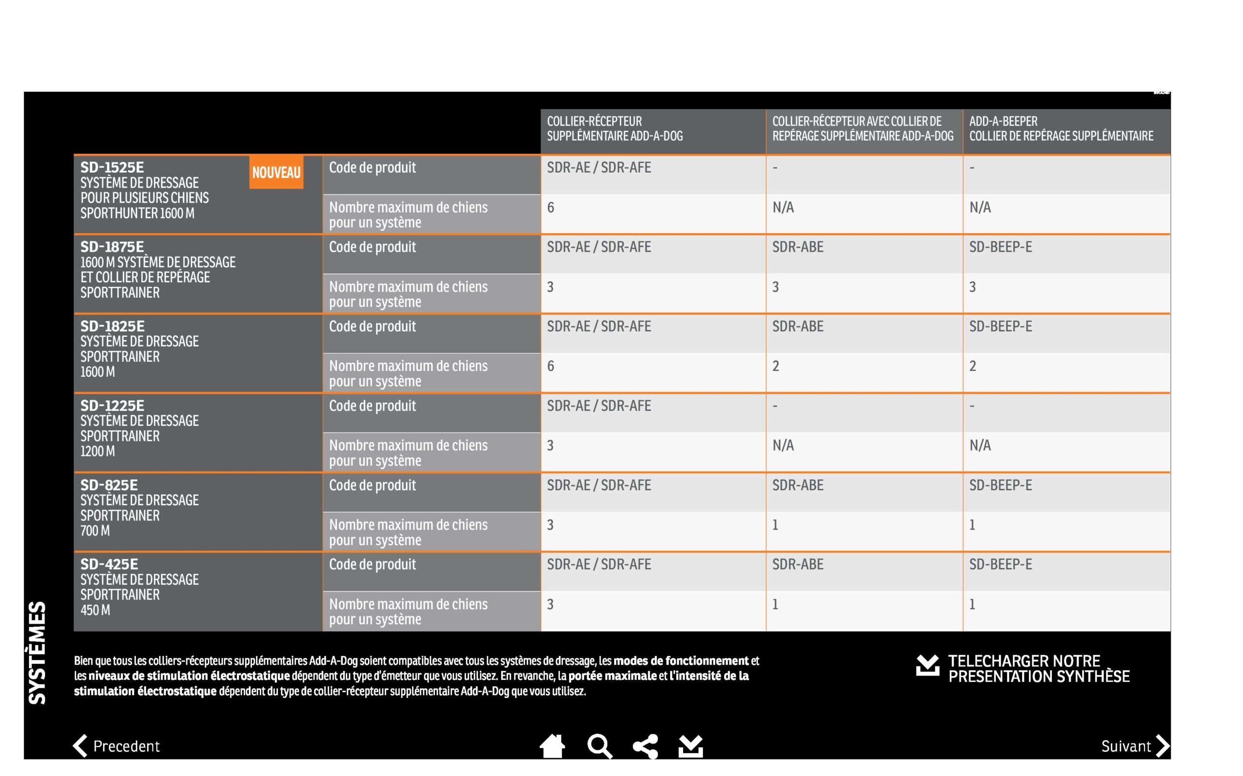 Portée de 450 mètres avec 7 niveaux de stimulation électrostatique. Supporte jusqu’à 6 colliers (à acheter séparément). Système complètement étanche grâce à la technologie DryTek™. Batterie rechargeable avec option vibration et signaux sonores