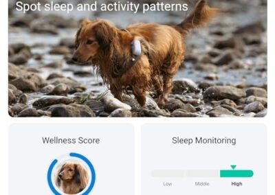 - MONITEUR D’ACTIVITÉ ET DE SOMMEIL : Définissez des objectifs et comparez ses résultats à ceux d’autres chiens. Veillez à son bien-être et détectez tout problème à temps