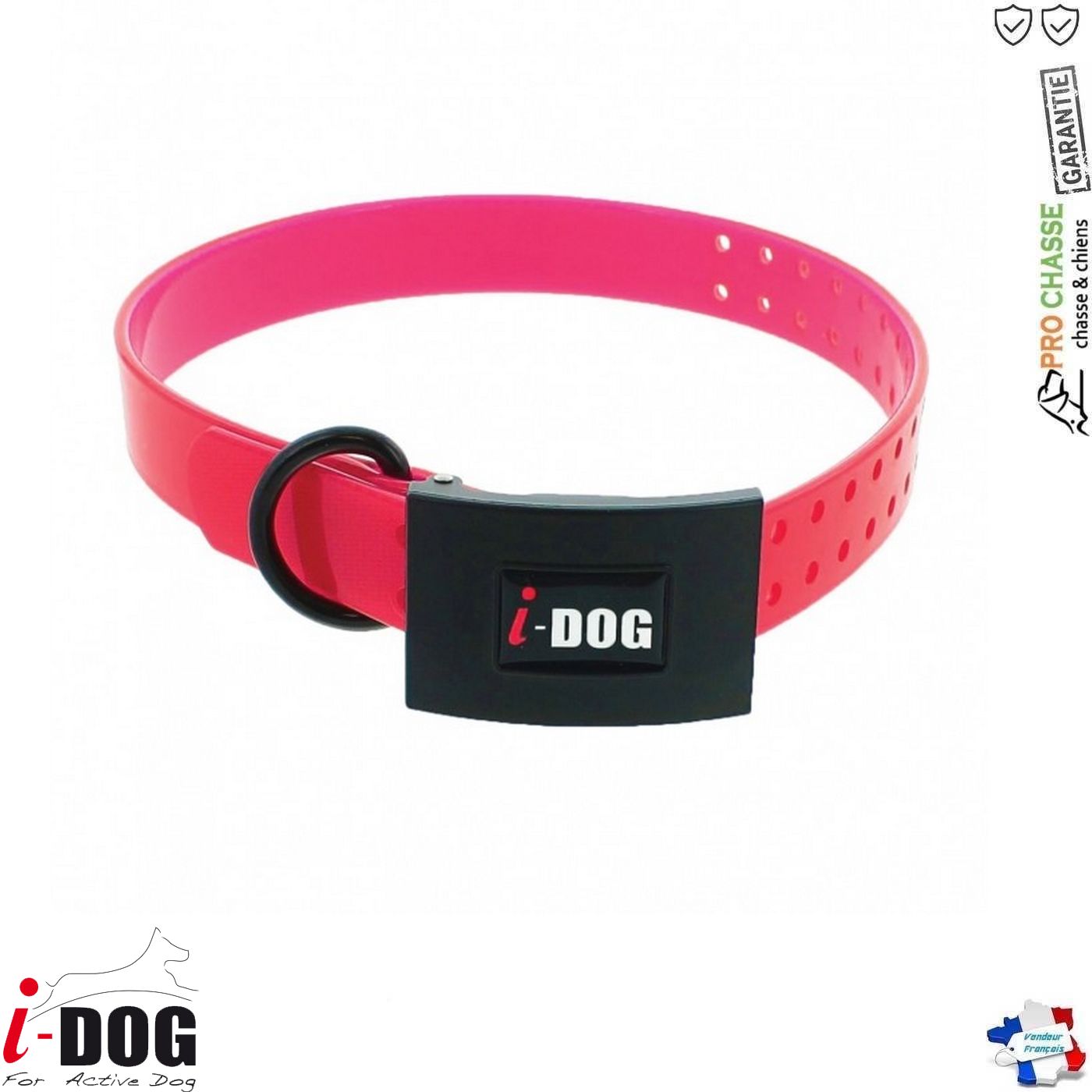 Collier Premium I-Dog en polyuréthane avec une qualité de toucher exceptionnelle, muni d’une boucle sécurisant l’accroche du collier.