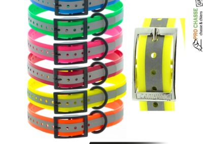 Collier pour chien en polyuréthane muni dune bande réfléchissante. Les colliers réfléchissants sont équipés d’une bande qui va permettre au chien d’être visible. Cette bande réfléchissante représente une sécurité supplémentaire pour les compagnons de chasse. Les colliers XTREME Réfléchissant comme leur nom l’indique, sont équipés d’une bande réfléchissante permettant aux chiens d’être visibles. Ces colliers sont composés d’une sangle en polyester enduite de polyuréthane translucide. Cette matière rend les colliers XTREME Réfléchissant léger et imperméable.