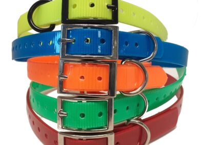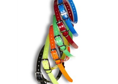 Collier Sangle Polyuréthane résistant et très souple confortable pour le chien Ce collier reste donc très souple même par grand froid. Il ne décolore pas. Imputrescible, très résistant et sans odeur. Sa matière toute lisse la rend facile à nettoyer.