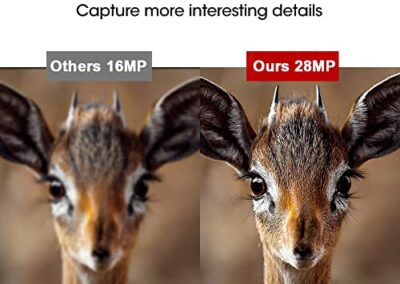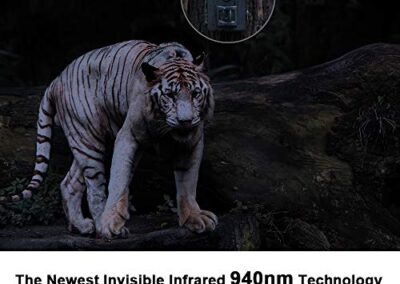 - Technologie avancée et design unique- La combinaison du noir pur et de la technologie 940 nm garantit que votre caméra de chasse s’intègre bien dans la nuit. 27 LED infrarouges fournissent suffisamment de lumière sans problème de surexposition locale. Dans la nature, à la ferme ou dans votre jardin, les caméras de chasse n’effraient ni les animaux ni les gens et vous êtes sûr de ne rien perdre