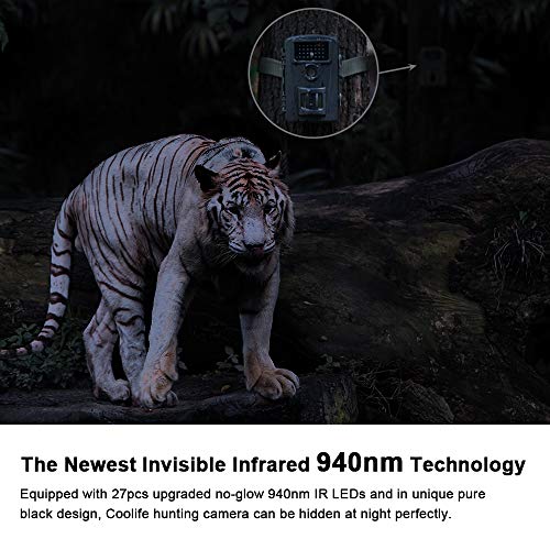 COOLIFE 28MP 1520P HD Caméra de Chasse Vitesse de Déclenchement 0.2s et 27 pcs Infrarouges LED de 940nm, Camera de Chasse Nocturne IP66 Étanche à l’eau et à la Poussière avec Carte 32G (Noir)