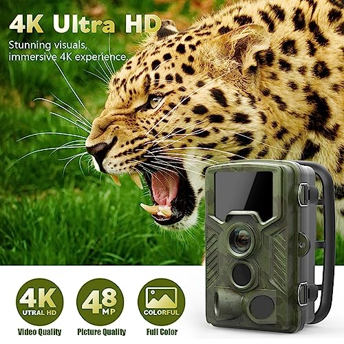 COOLIFE 48MP 4K Caméra de Chasse, Grand Angle 125 ° Caméra de Chasse Nocturne la Distance de Vision Nocturne 25m Piege Photo Vitesse de Déclenchement de 0.1 s Piege Photographique avec Carte 32 Go
