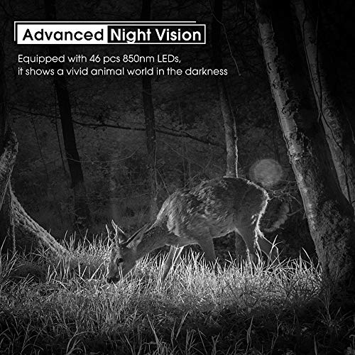 - 【Excellente vision nocturne et IP66 étanche】La camera chasseur nocturne coolife est équipée d’un filtre infrarouge entièrement automatique et de 46 pcs lumières infrarouges 850 nm, qui peuvent fournir suffisamment de lumière sans surexposition la nuit, assurant une excellente vision nocturne