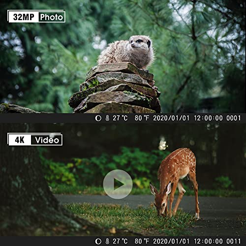 - 【Image 32MP plus claire et résolution vidéo 4K】La caméra de chasse H953 peut prendre des photos et des vidéos ultra haute définition 32MP et 4K. Avec un enregistrement sonore ultra-clair et un écran LCD de 2,4 pouces, il peut montrer plus clairement chaque instant capturé par les H953 caméras de chasse
