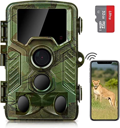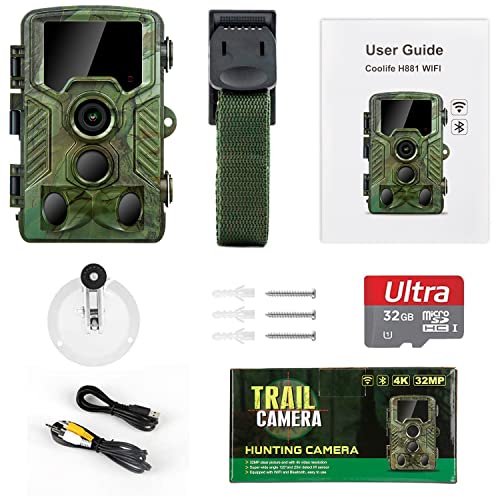 coolife Caméra de Chasse WiFi 4K 32 MP Distance de Déclenchement 25m Vitesse de Déclenchement 0.1s Caméra Chasse Infrarouge 49 pcs 850nm IR LEDs piege Photographique avec Carte 32G