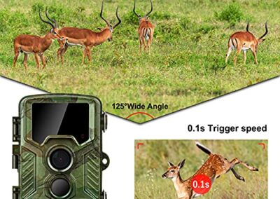 - Vitesse de détection de 0,1 s et distance de détection de 25 m – Grâce aux 3 capteurs, piege photographique peut passer instantanément en mode de prise de vue. Une vitesse de déclenchement impressionnante de 0,1s garantit que vous ne manquerez aucun moment merveilleux devant l’appareil photo. Équipée de 49 LED infrarouges de 850 nm, vous pouvez obtenir des vidéos et des photos haute définition et haute luminosité la nuit