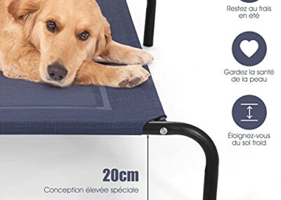 - 【Utile pour la santé des chiens】Le lit du chien est au-dessus du sol et la housse en tissu est respirante. il est donc résistant à l’humidité. La couchette peut protéger votre chien contre les maladies de peau, l’eczéma, l’inflammation des articulations et les coups de chaleur.