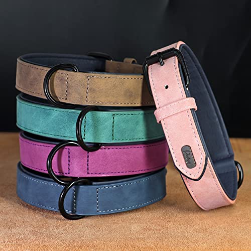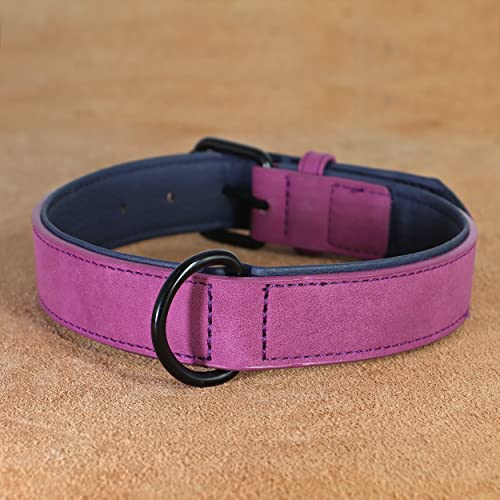 Didog Collier pour Chien en Cuir Rembourré Doux, Collier pour Chien en Cuir Respirant et Robuste avec Boucle Réglable en Métal Antirouille pour Petits Moyens Grands Chiens, Violet, L
